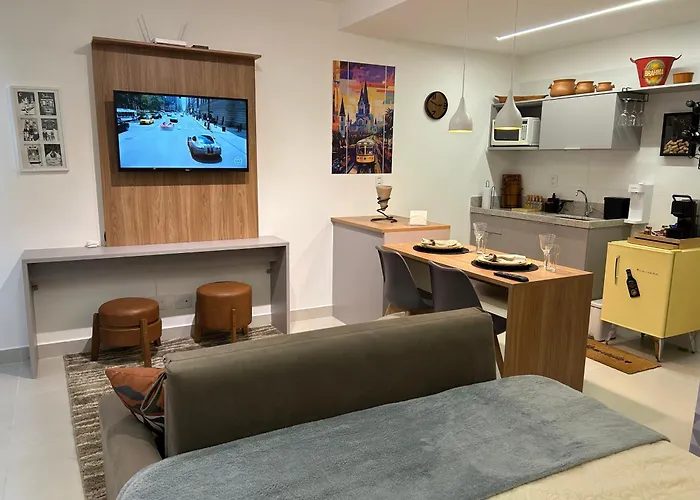 Situated just 6 minutes' walk from the Chapel of Our Lord of the Steps, the 1-room Studiox, Perto De Tudo, Garagem Juiz de Fora apartment offers guests easy access to various tourist attractions nearby. The apartment offers modern facilities, such as Wi-Fi and essentials like complimentary private parking for car travellers.